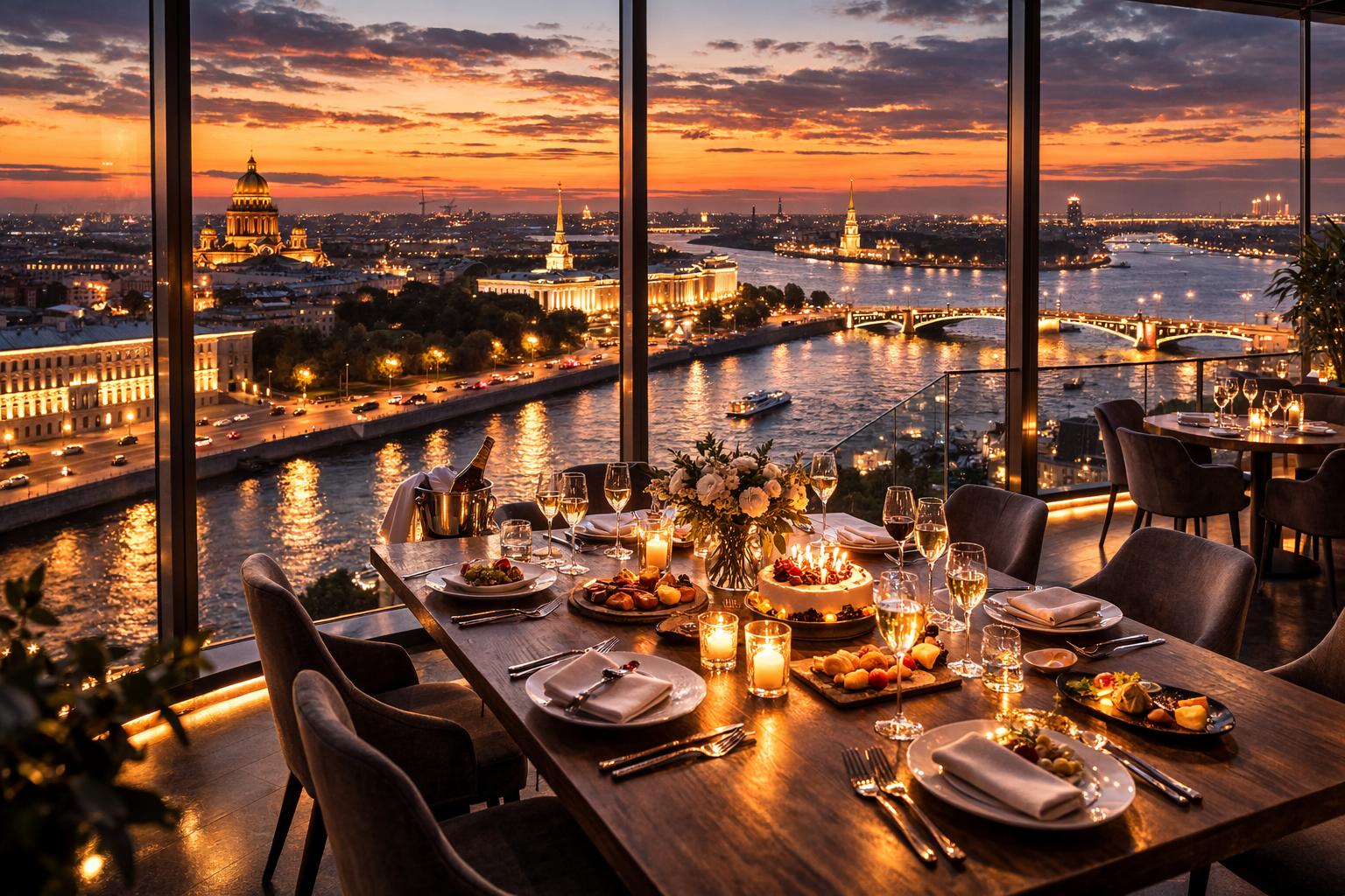 Праздник с видом на город создаёт совершенно другое ощущение масштаба. Когда речь идёт о дне рождения, годовщине или семейном торжестве, панорамные рестораны Петербурга становятся удачным решением благодаря сочетанию пространства, света и выразительного фона. Вид на Неву, мосты и исторические кварталы добавляет событию торжественности без необходимости сложного декора.