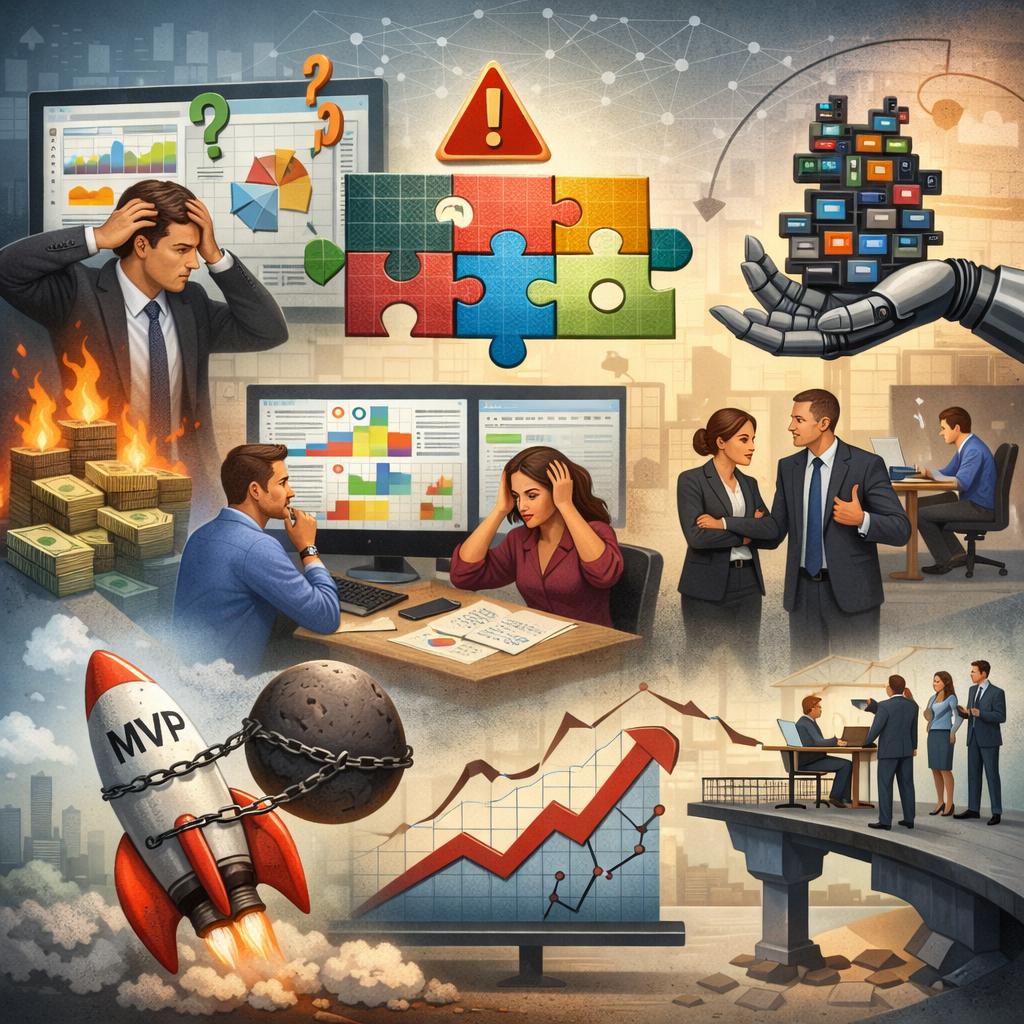 - Отсутствие итеративного подхода. Попытка внедрить «все и сразу» за год — верный путь к провалу. Успешные проекты строятся по принципу гибкой методологии: быстро внедряют MVP (минимально жизнеспособный продукт) для решения одной конкретной задачи, получают обратную связь, дорабатывают и масштабируют.