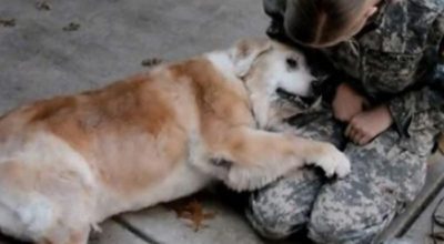 Старый пес не может перестать плакать, когда хозяин-солдат наконец возвращается домой